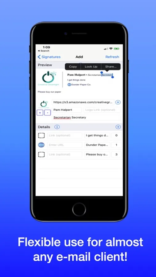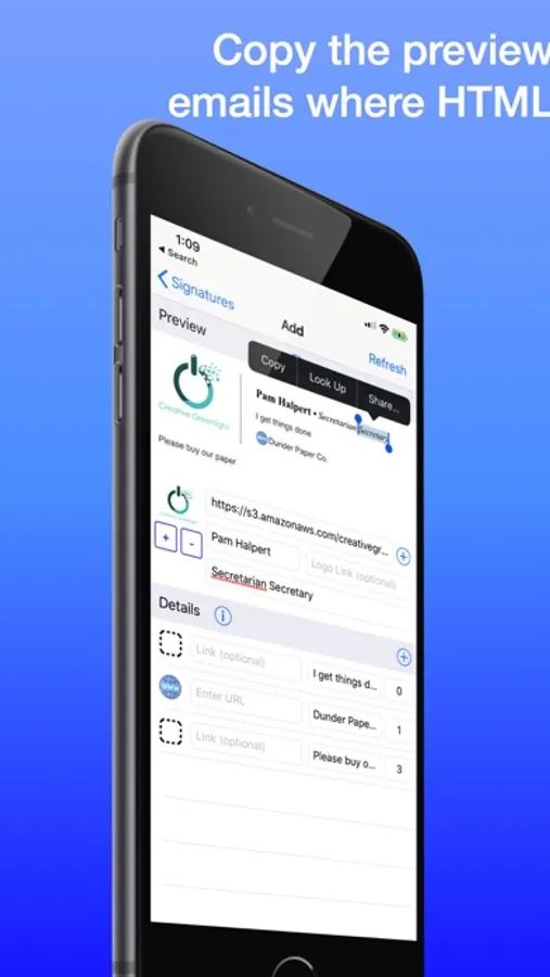 Just input the information, copy it to your clipboard and paste it into the text/html field of your preferred e-mail client.