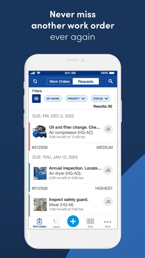 - Work order management: Easily create and assign work orders for maintenance tasks, and track their progress from start to finish.