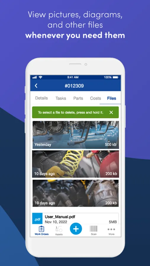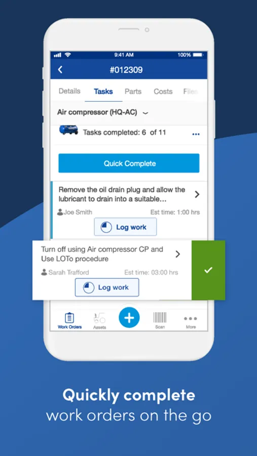 - E-signatures: Sign off on work orders directly on your device to streamline the approval process and eliminate the need for paper-based signatures.