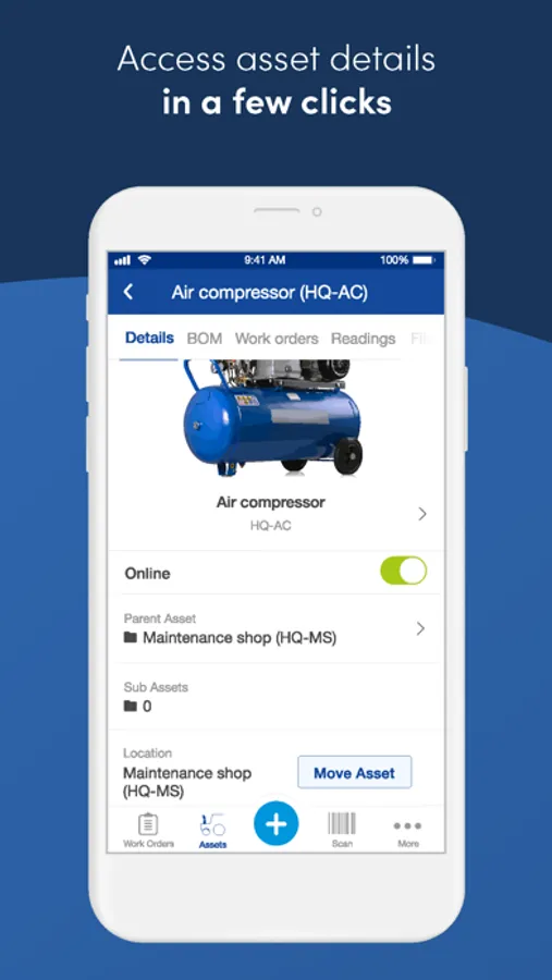 - Asset management: Keep track of all your organization's assets, including their location, condition, open work orders, and recent maintenance history.