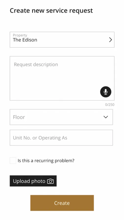 • Improved Service Request flow. No more category selection dropdown as we are using AI to automatically choose the correct category. You can now also choose different properties to create a service request for if you are visiting various properties through the Aspen Club