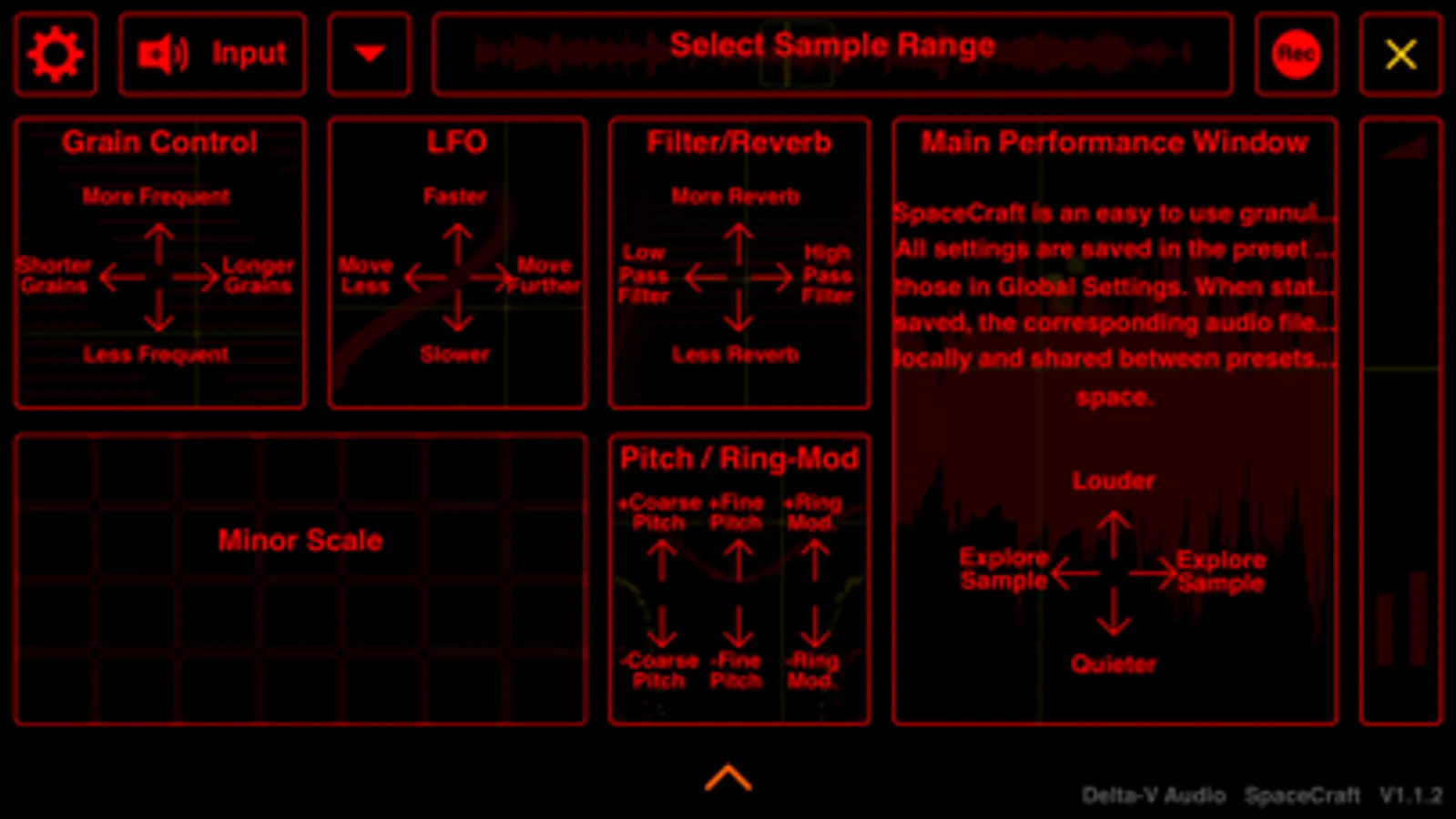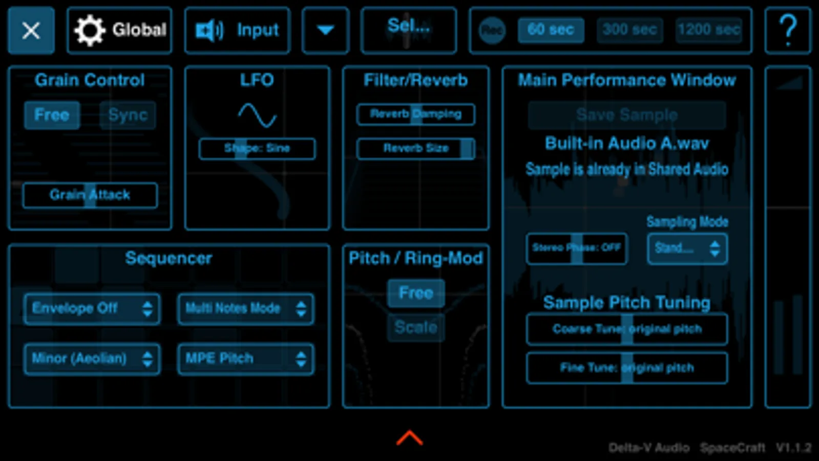 With SpaceCraft (MIDI, MPE, AUv3, IAA) you can transform any sound into a playable musical instrument via Granular Synthesis. You can create textures, soundscapes and arpeggiated rhythms from sounds such as your voice, ambient noise or the high quality built-in audio samples.