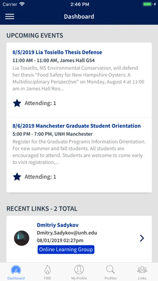 The LinkedUp mobile app also serves FIRE – the First-Year Innovation and Research Experience program at the Peter T. Paul College of Business and Economics.