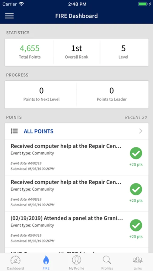 · View the FIRE points dashboard.