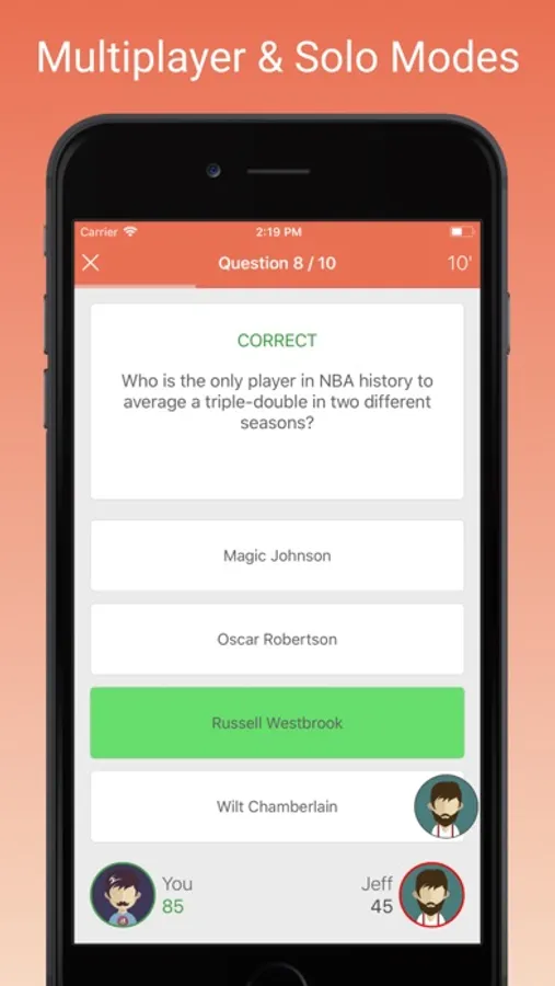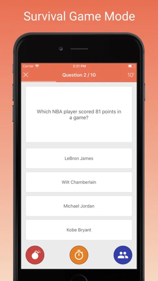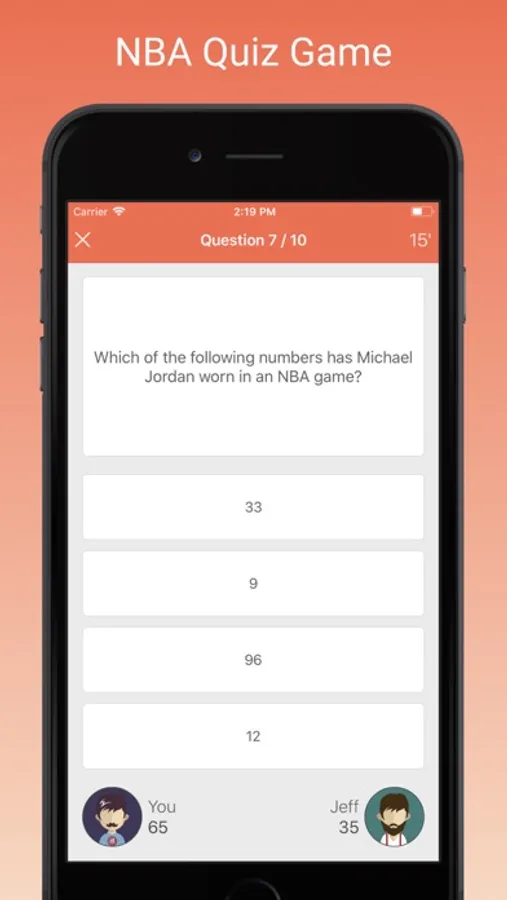 NBA Fan Quiz is a trivia game for real basketball fans! Play a heads up or single player game and test your multiple choice answering skills. There are over a thousand question for you to answer, with more added every day!