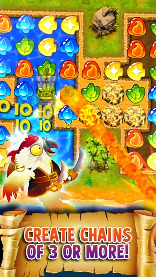 Ahoy Matey! You’re off and away on the adventure of a lifetime. Aboard a pirate ship and befriend creatures who will become your closest crew members. Blast through obstacles to make way for the pirates to Sail the Seven Seas. Build your team and learn how to use their skills to make your way through epic Match 3 challenges. Swipe to connect 3 or more gems of the same type to blast the barriers. You can swipe up, down, left, right, and even diagonally!