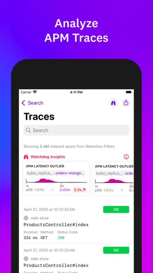 Analyze distributed traces and stay on top of application performance wherever you are.