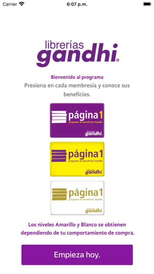 En nuestro continuo esfuerzo para brindarte lo mejor, hemos creado página 1 el programa de beneficios Gandhi, diseñado especialmente pensando en ti, dónde podrás acumular puntos Gandhi al realizar tus compras y redimirlos por productos, participar en interesantes eventos, gozar de promociones especiales, obtener artículos exclusivos y recibir toda la información sobre nuestras librerías y página 1 en tu correo electrónico.