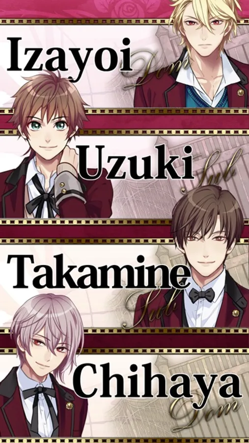 "Blood Domination" is a visual-novel BL game. Players get to enjoy the scenarios through the usage of Scenario Ticket.
