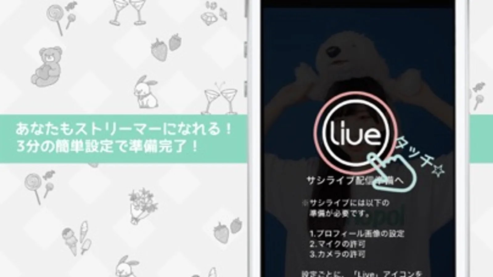 サシライブは、1対1でライブを行う新感覚ライブ配信アプリです。スマホ1台あれば、アプリをダウンロード後にすぐサシライブ配信ができます。配信準備が終わったらリスナーからの参加リクエストを待ちましょう。