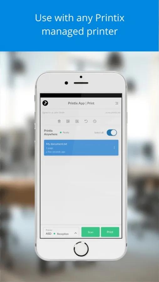 Use the Printix App to release documents on Printix managed printers. Capture and deliver images to your selected workflow destination.