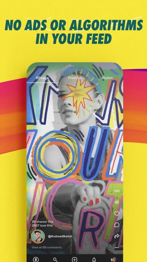 On WeAre8, authenticity is more important than trends, positivity is the only influence and you control what feeds your mind, not some algorithm. The real game changer? On 8, you can even support charities to drive positive change.