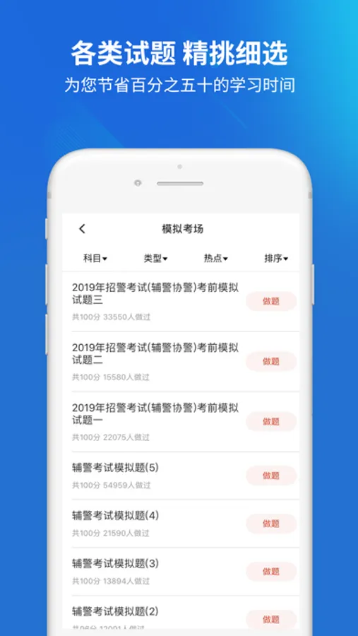 辅警协警考试题库有模拟考场、历年真题练习、每日一练、快速练习、考点练习、考试押题、做题记录等多种学习与做题模式、丰富多样化的陪你一起考辅警协警。
