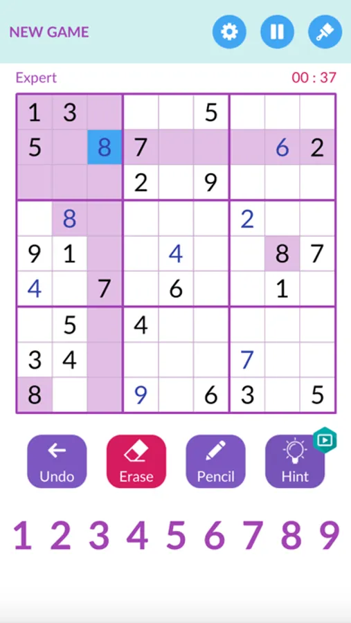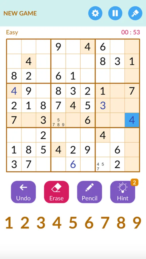 - Turn on Pencil mode to make notes as on paper. Each time you fill in a cell, notes are automatically updated!