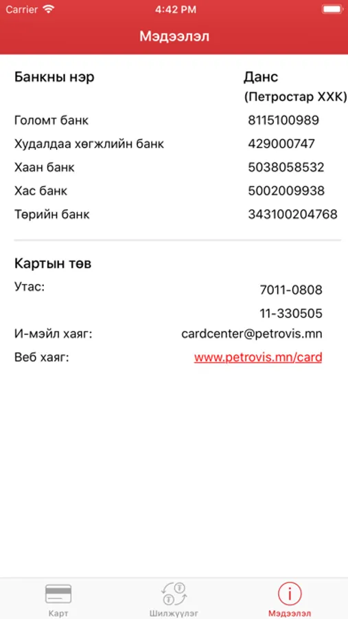 Petrovis card application is for customer of Petrovis LLC which is one of the biggest petrol provider in Mongolia. The application offers easy and convenient account or card management service.