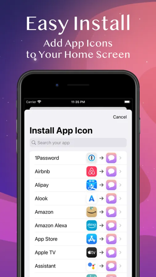 Generated icons are pixel perfect that can be used on your home screen directly without converting formats or resize images. Perfect for giving your iOS home screen a custom aesthetic with unique app icons.