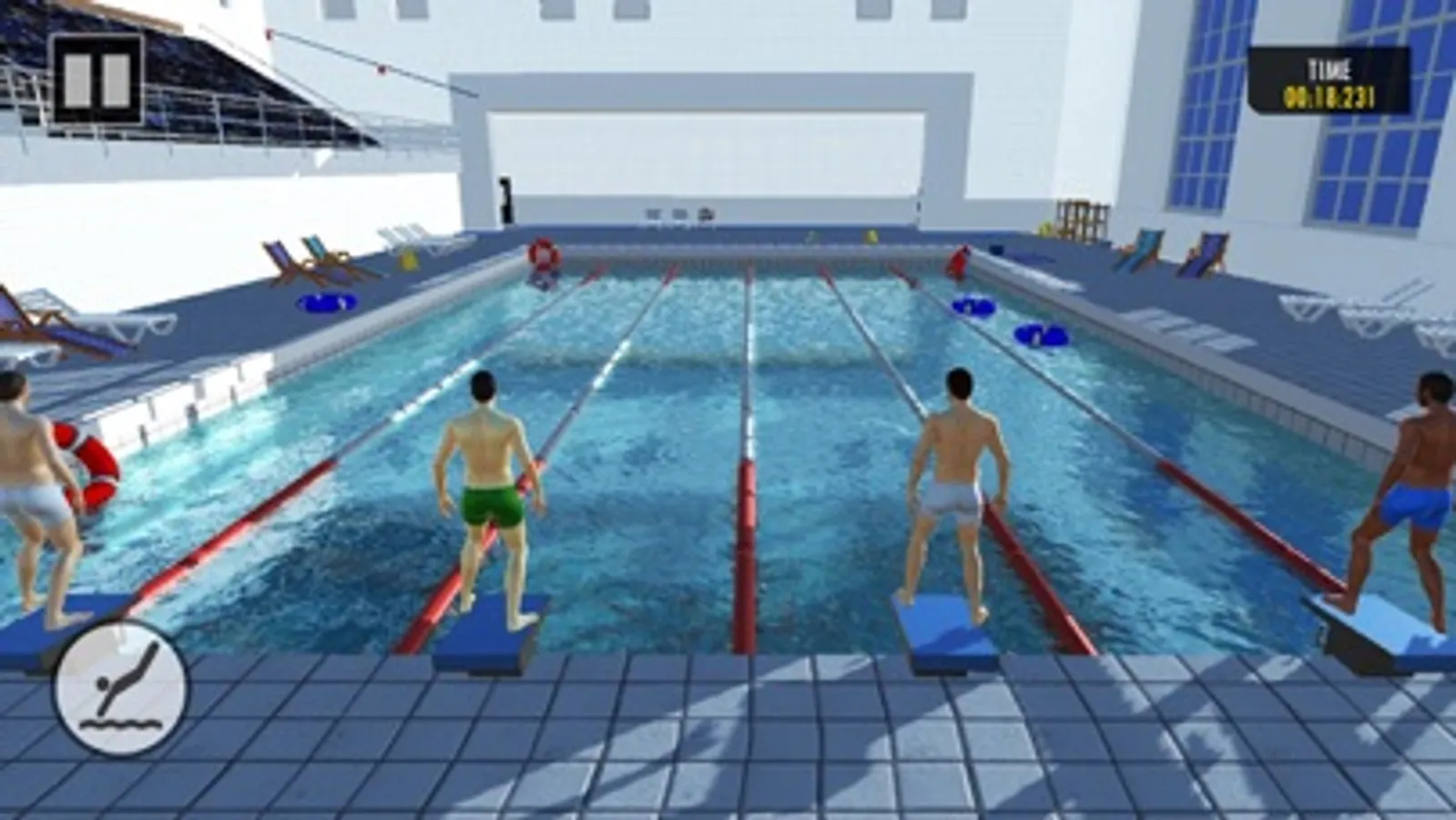 In this Real swimming pool race swimming season 2018 you will get wide range of stunts and tricks to perform back dive and racing, half twist, straight and other. You should choose the best swimming stroke that is best suited to your body to propel in water. Feel like a real professional athlete! Choose the country choose a sportsman and start amazing summer sports adventure. You can play as a real swimmer. Use different styles of swimming like breaststroke, backstroke, butterfly stroke, front crawl and free style swimming. Each stroke defined a different swim style or crawl. Level you are swimming skills up and you will find yourself at the top of the tournament list. Reach fantastic speeds during your swimming pool race and leave all your contestants far behind! Control your swimming by tapping the screen and tap quickly to accelerate, change the direction or to slow!