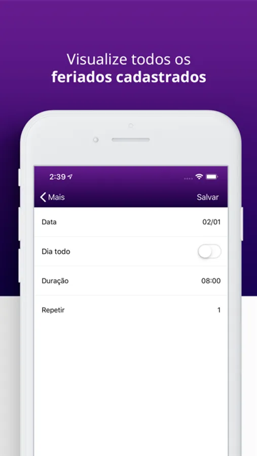 - Cadastre outros feriados.