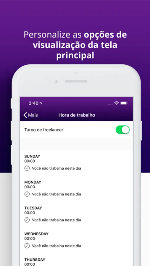 - Configure cada período do seu dia do horário de trabalho
