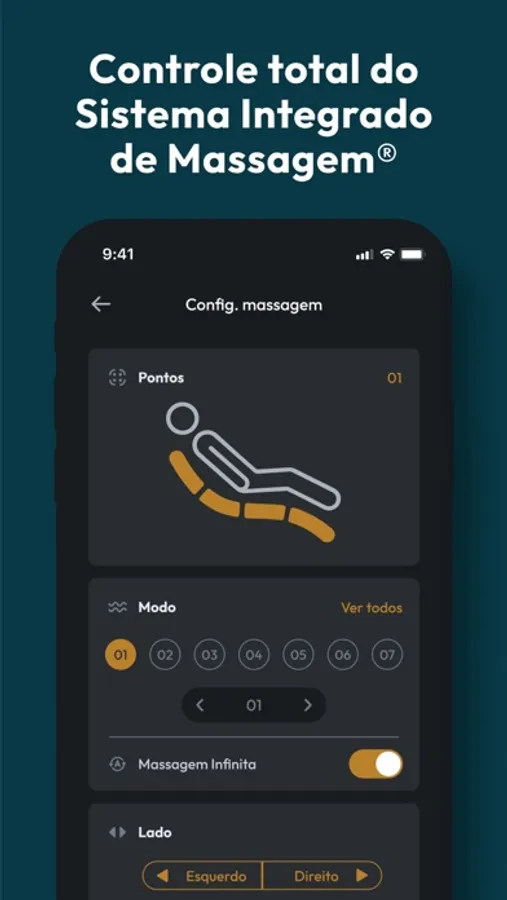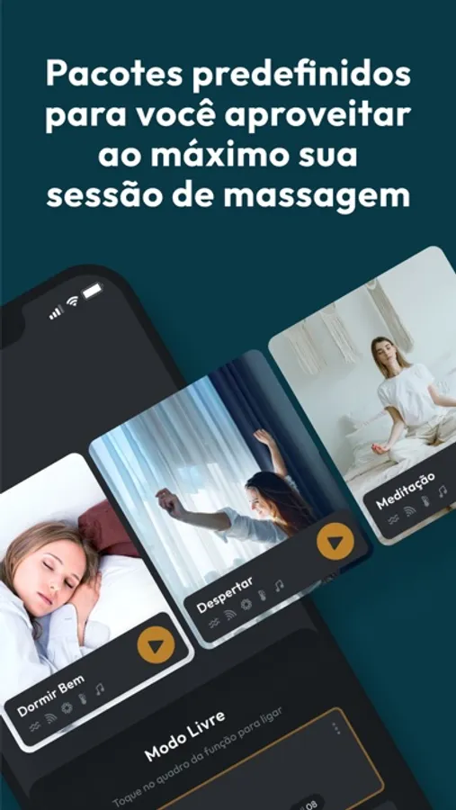 Com o app você será capaz de controlar e configurar qualquer dispositivo Vida Mais. Você pode também configurar o despertador e acordar com uma bela massagem.