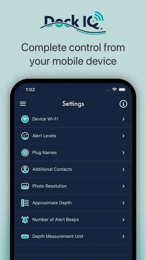 Dock IQ Owner App alerts customer when their dock needs to be moved in or out according to water level thresholds set for each dock. It also provides remote viewing through cameras.