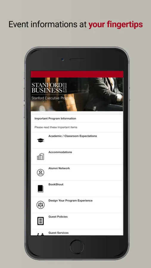 Enhance your Stanford Graduate School of Business Executive Education program experience by using the official app. It gives you access to program content and the program schedule. It offers innovative ways for interaction and networking. Some of the features include: