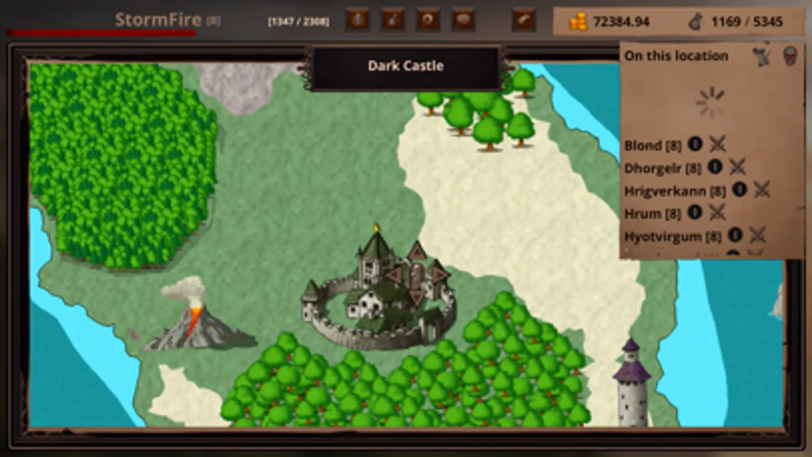 RPG in text style where you are given a hero located on the island, where he can move and fight. For the victory the hero gets experience, money and a thing.