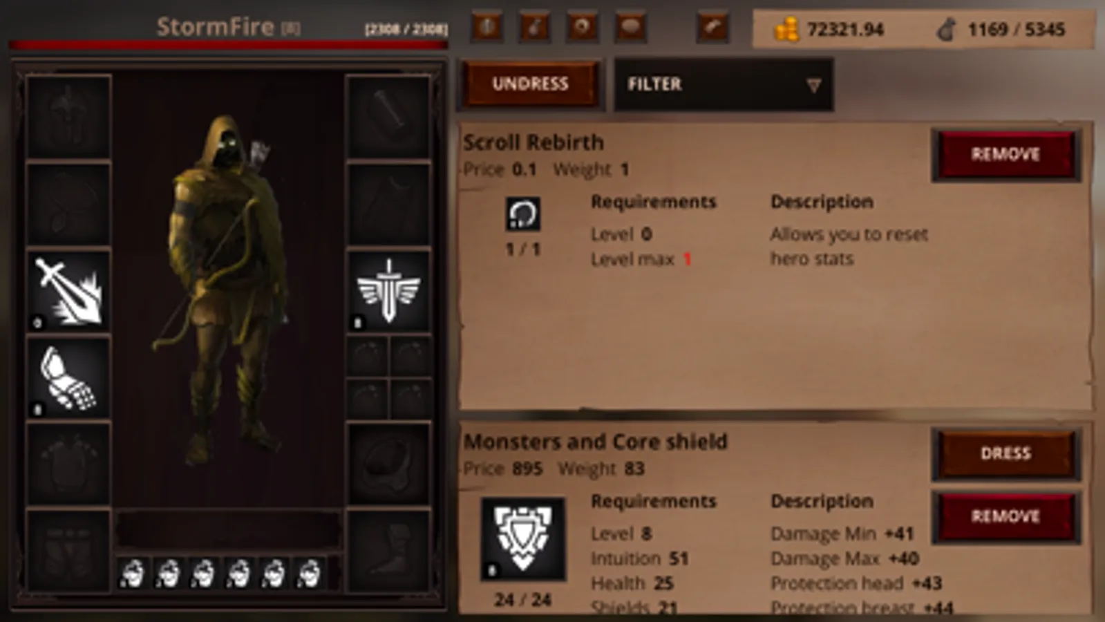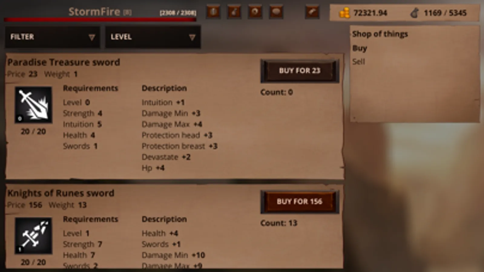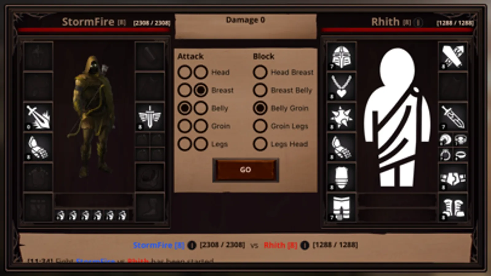 Combat - occurs in text styles where the hero and opponent choose the points for attack and block. In case of victory, the hero gets experience, but sometimes money and thing can be dropped. Experience and dropped items are the main way to develop the hero.