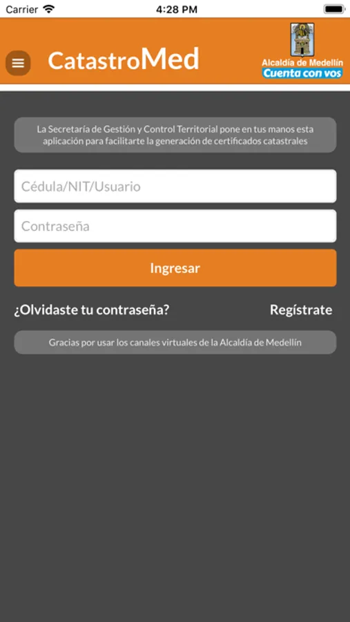 CatastroMed, es la aplicación móvil gratuita de la Secretaria de Gestión y Control Territorial del Municipio de Medellín a través de la cual usted podrá generar certificados y documentos:
