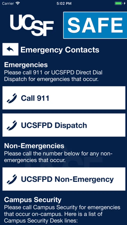 - Emergency Contacts: Contact the correct services for the UCSF area in case of an emergency or a non-emergency concern