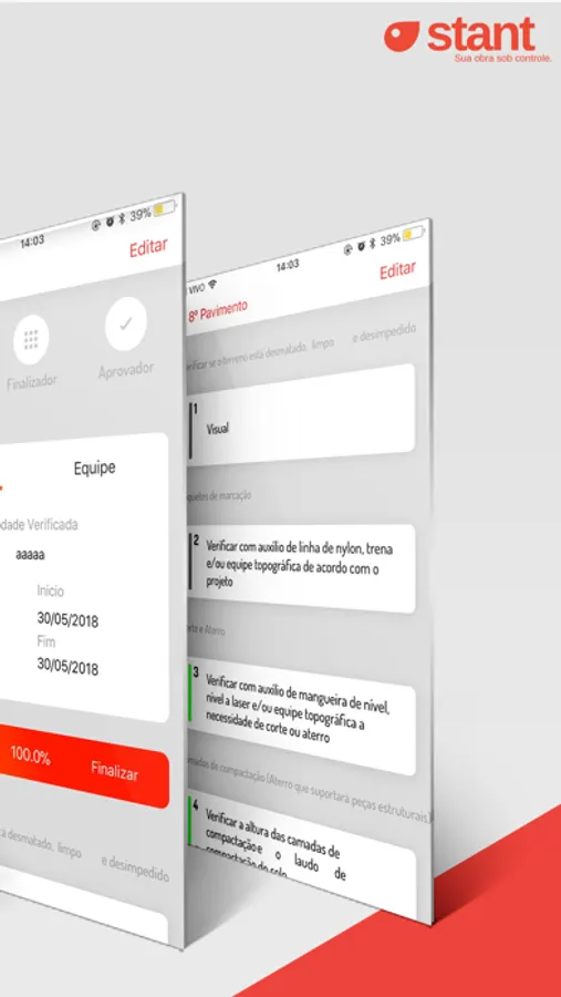 O Stant é uma plataforma que ajuda a gerenciar melhor todo tipo de construção. Foi criado para cumprir também as exigências da ISO 9000, que é um padrão de qualidade internacional. Com o Stant, os responsáveis pela obra tem uma melhor comunicação de atividades a serem feitas, problemas a serem resolvidos, bem como os projetos e procedimentos sempre à mão do usuário.
