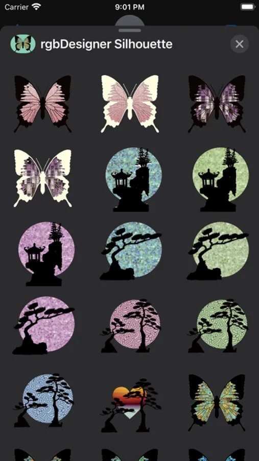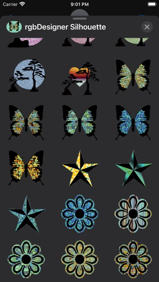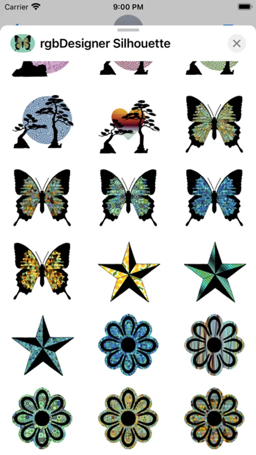 Inspired by paper cut illustrations from last century, and combined with beautiful digital colourfield images made with our rgbDesigner app, these elegant stickers will enhance and enrich your digital life. Forty one ways to amuse and delight your friends. New dark mode stickers. Always choose beauty.