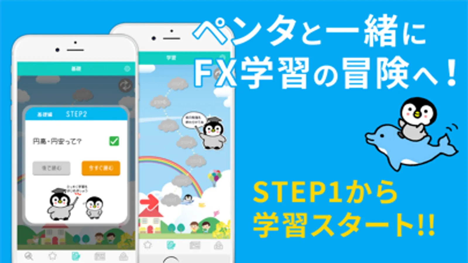 ペンギンと一緒に成長を感じながら学習ができます。