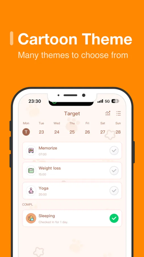 1. Edit and create new customized goals, and set the repetition time, reminder time and motivation words for your goals.