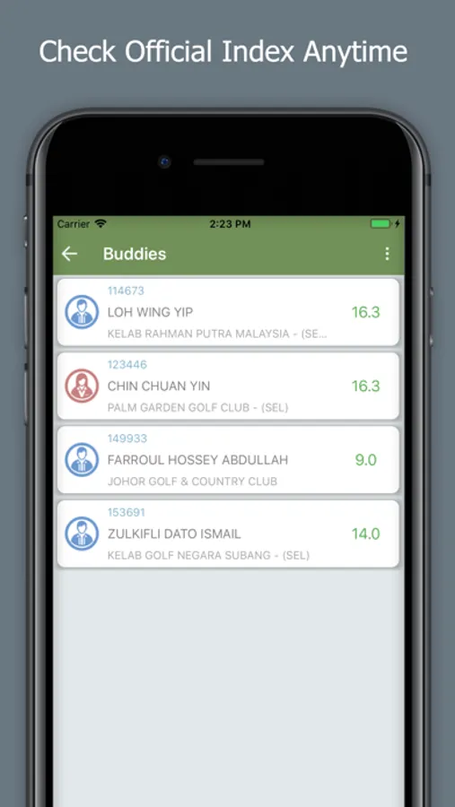 • Find Buddy List (other NHS members), follow your friends’ handicaps