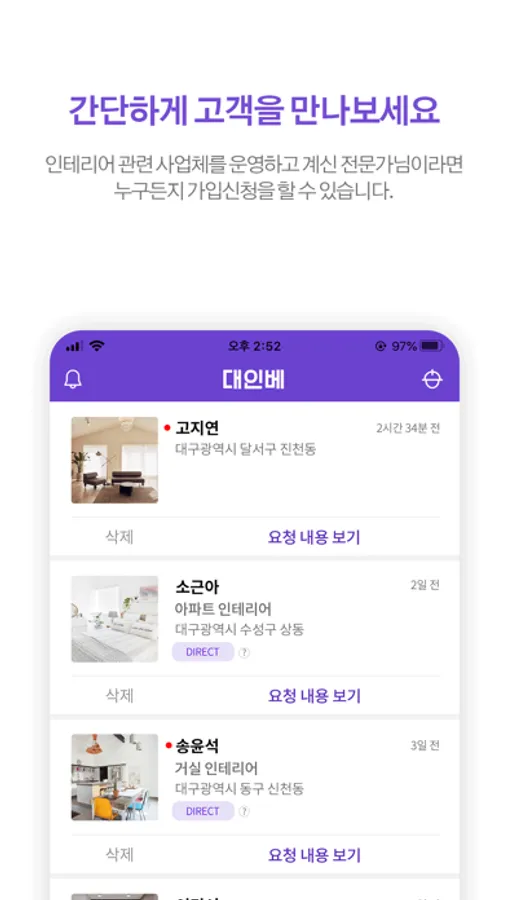 대구에 있는 인테리어 전문가 100명 이상 등록된