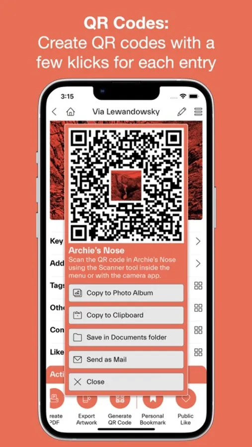 Supplemented by spectacular functions such as a QR Code Generator, Hang on Wall Simulation, PDF Generator. As well as a memory function for everything you want to keep and find again quickly. Information can be combined with one another, the press release with the exhibition, the catalogue with the artist. It works without an AI or algorithm, so that the community becomes aware of all posts. Comprehensible, transparent and relevant. Quickly at hand and always with you.