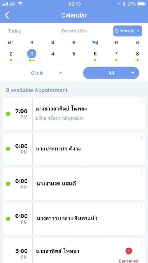 ระบบสำหรับแพทย์และเจ้าของคลินิกในการจัดการนัดหมายออนไลน์ ดูตารางปฏิทิน ใส่วันหยุด ใส่บทความสุขภาพ ดูสถิติรายงานต่างๆง่ายๆบนมือถือ เหมือนมีเลขาและผู้ช่วยส่วนตัว ด้วยระบบแจ้งเตือนนัดหมายคนไข้ ลดการลืมนัดหมาย มาตรวจตรงวัน ตรงเวลา