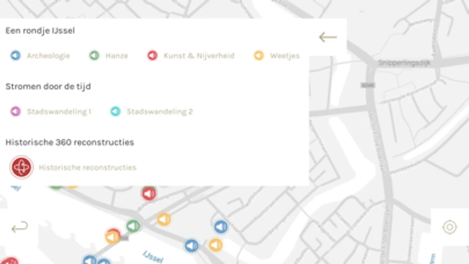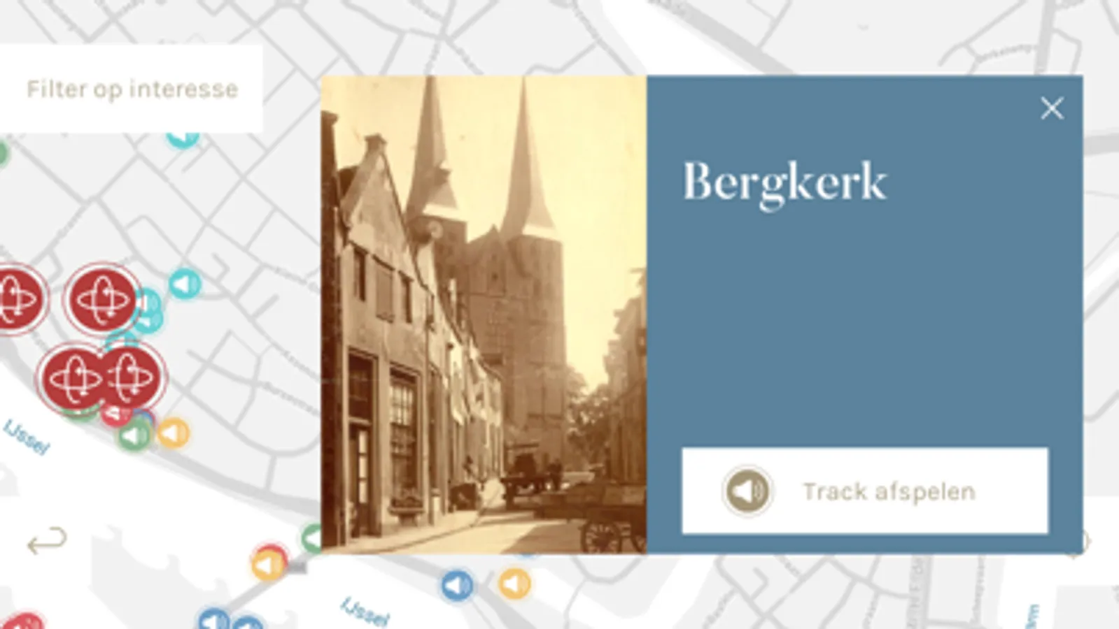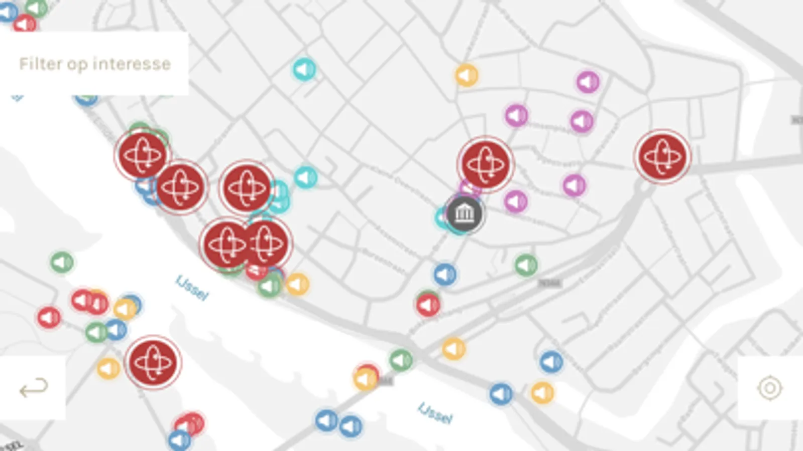 Met de app zijn diverse historische hotspots in de stad te bekijken in verschillende tijdlagen; in het verleden én toekomst. 3Deventer biedt o.a. een virtuele blik op het Deventer van 1550, waarin de oude dubbele stadsmuur is te bezichtigen vanaf de overkant van de IJssel. Klik in het beeld op de ‘Points of Interest’ voor meer historische informatie. Wandel langs de historische hoogtepunten in Deventer met de twee audiotours in 3Deventer en beluister de audiotracks voor meer achtergrondinformatie.