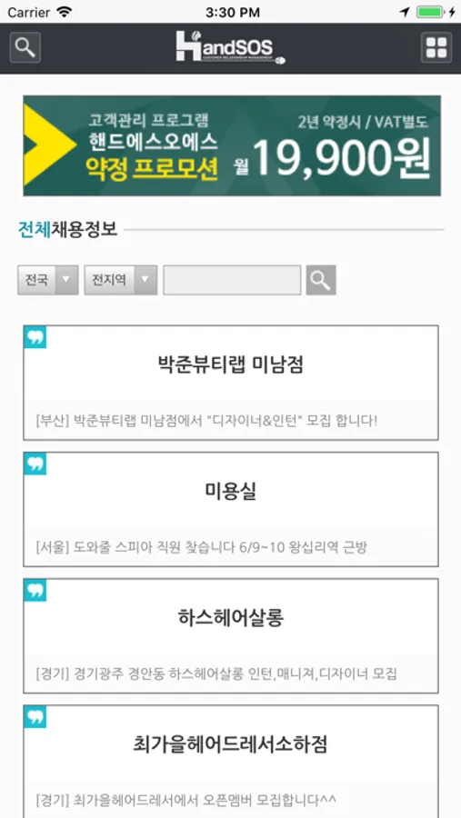 대한민국 미용 취업의 시작 핸드SOS구인구직 앱