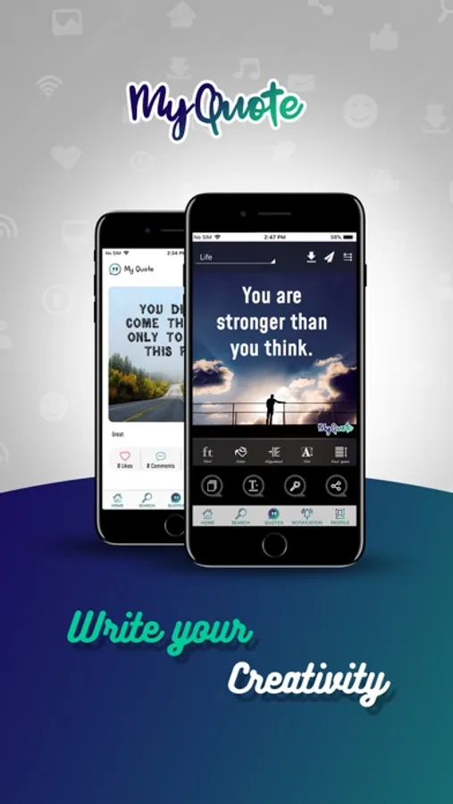 Share with Social Media: MyQuotes is the best iPhone application for sharing your own quotes, one-liners, poems & other creative writing across various social media platforms like Facebook, Instagram, Twitter, WhatsApp & others.