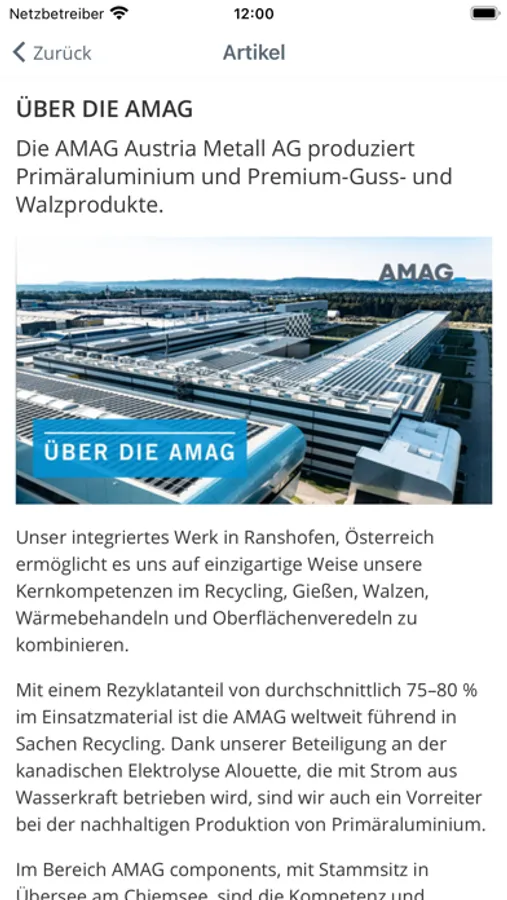 AMAG Connect - Die App der AMAG Austria Metall AG. Diese Informationsplattform kann zu jeder Zeit und allerorts auf jedem Gerät Ihrer Wahl genutzt werden und hilft Ihnen somit "up to date" mit Neuigkeiten und Information der AMAG zu bleiben.