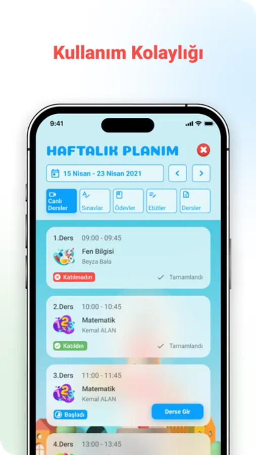 · Kullanıcı Dostu Arayüz: Kullanım kolaylığı esas alınarak hazırladığımız ekranlar ile öğrenci, veli, öğretmen ve yöneticiler için kullanım kolaylığı sunuyoruz.