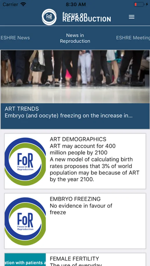 The Focus on Reproduction app gives you personal access to the online magazine of ESHRE, the European Society of Human Reproduction and Embryology.