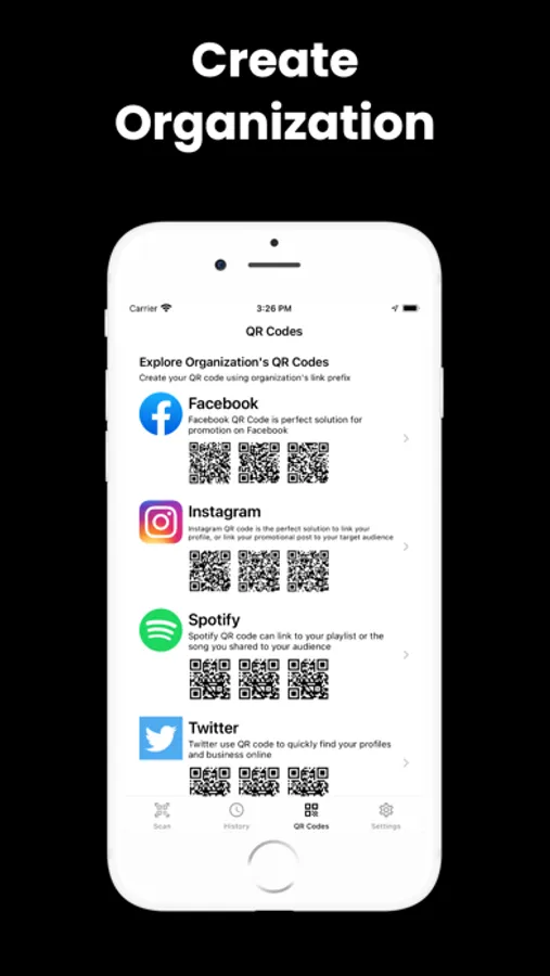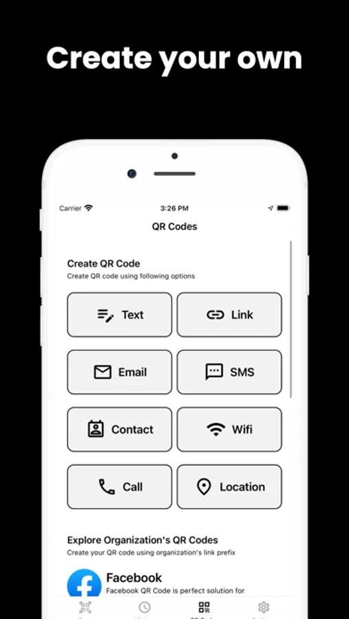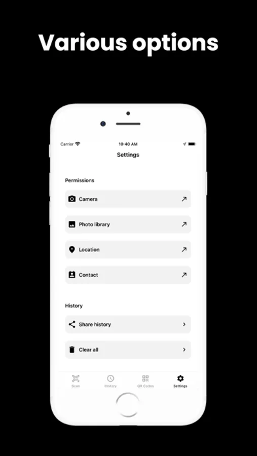 The scanner include bar codes and QR codes, so users can scan the code and either open website or see the information attached. Moreover, history records allow users to check the scan records and do actions accordingly.