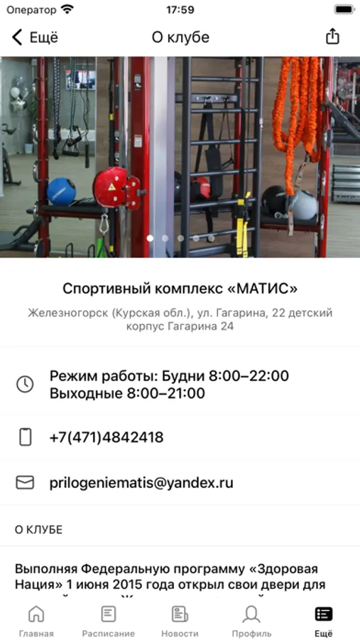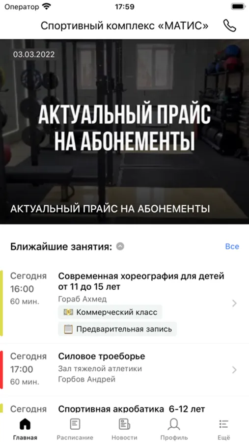 С помощью приложения вы сможете следить за новостями, расписанием клуба, оперативно получать информацию об изменениях в расписании и специальных предложениях.