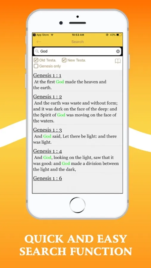Type any word you want to find in the bible and this feature will quickly bring up something that is related to the search term. It can be the full word or parts of it. The intelligent search will find it for you.