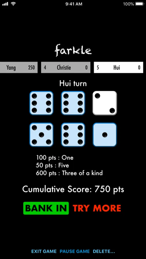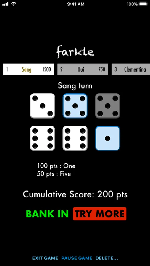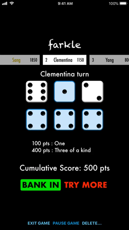 Farkle is a dice game that has also been called or is similar to 1000/5000/10000, Cosmic Wimpout, Greed, Hot Dice, Squelch, Zilch, Zonk etc. Its origins as a folk game are unknown, but the game dates back to at least the mid 1980s. It is now (unofficially) digitalized, so as you can play on your electronic devices, and not just on your iPhone or iPad, but also on your Apple Watch!