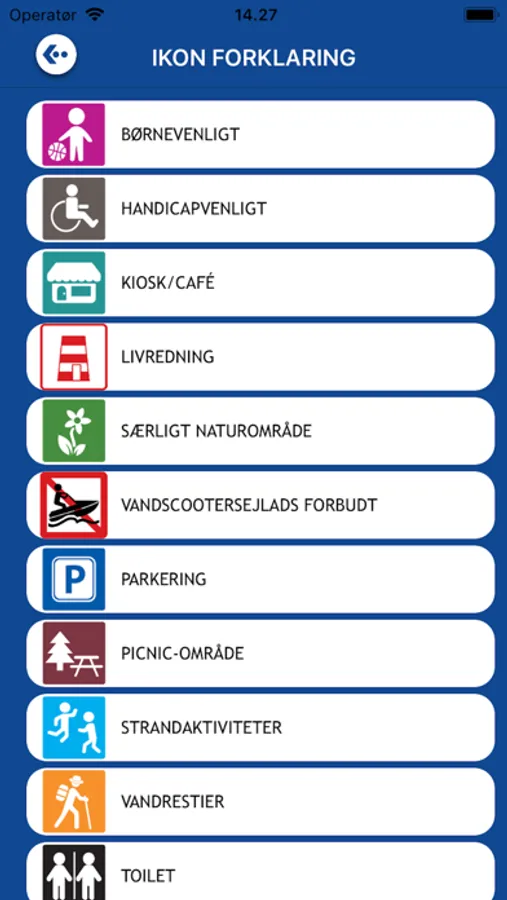 Kyst & Strand-app’en, som du sidder med i hånden, giver dig nyttige oplysninger om, hvad den enkelte strand/kyst kan tilbyde året rundt. F.eks. i forhold til vandreture, naturområder, flora samt faciliteter som parkering, toilet, kiosk/café, livredning, legeplads m.m.