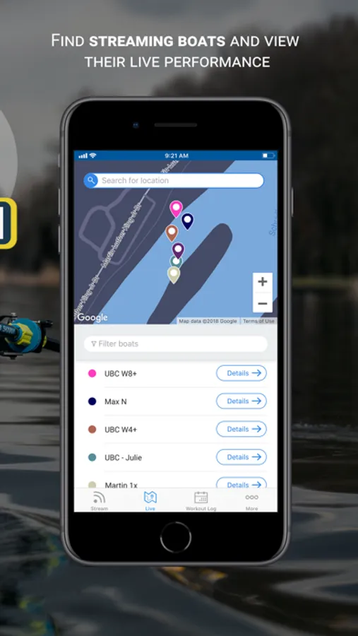 Coaches, family, friends and spectators can view your location on the map viewer. Just scan the map viewer or boat list to locate any streaming boat.